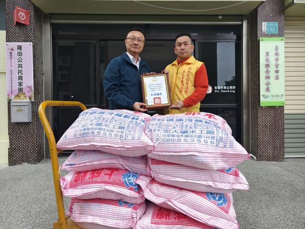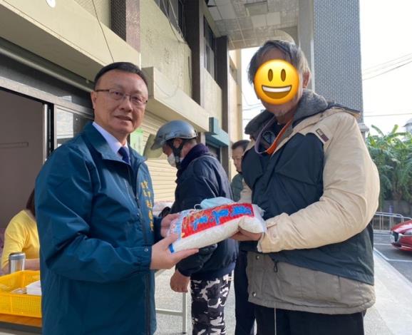 官田區公所於今(22)日農曆春節前夕發放物資,區長洪聰發感謝臺南市混元聖祖功德會及無極竹安寺捐贈物資予本區弱勢家庭,讓他們感受到社會的溫暖與關懷。