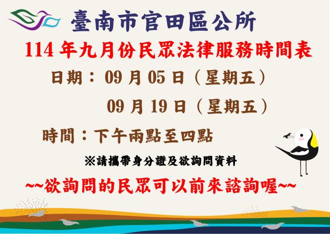 臺南市官田區公所人民申請案件項目暨處理期限表