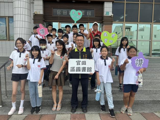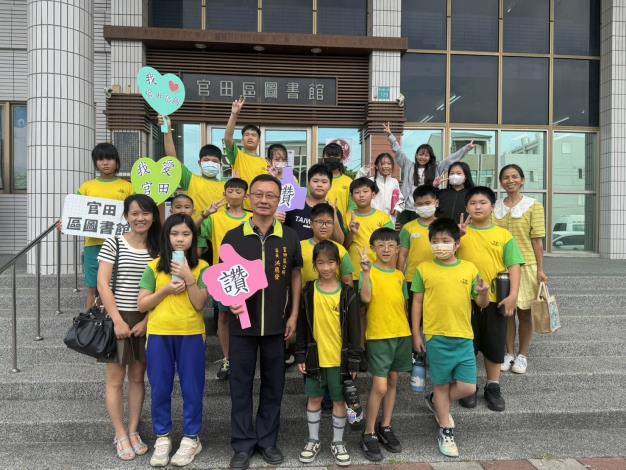 官田國小今(21)日蒞臨本區圖書館參訪,這群可愛的小水雉童鞋受到區長洪聰發及館員姐姐的熱情迎接並在獲贈文具小禮物驚喜中,展開閱讀冒險。