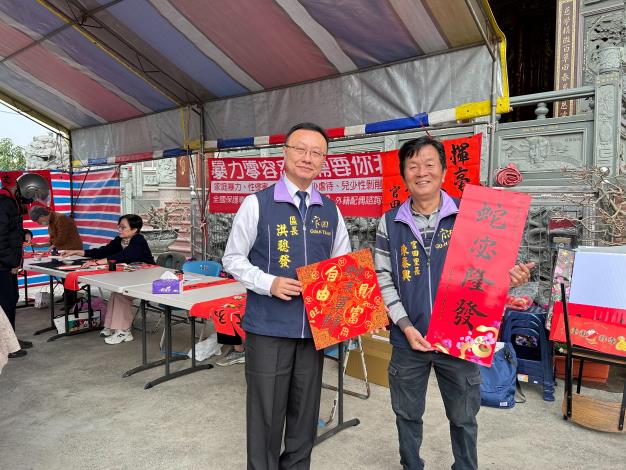 為迎接農曆新年到來,官田里辦公處於今(23)日上午在官田慈聖宮前廣場辦理「揮毫迎春賀新年暨家庭暴力防治宣導」活動,邀請書法家現場揮毫贈春聯,讓市民歡喜迎新春,快樂過新年,活動除了傳遞春節祝福,並於現場辦理#家庭暴力防治#登革熱防治#防災避難#反詐騙#性別平等宣導#交通安全宣導#調解業務宣導,讓民眾體驗傳統文化之美並感受喜氣的春節歡樂氣氛!#蛇宓隆發#反詐騙專線165#家暴零容忍通報專線113#路口慢看停#趴下掩護穩住