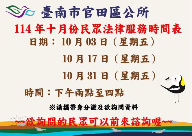 臺南市官田區公所人民申請案件項目暨處理期限表