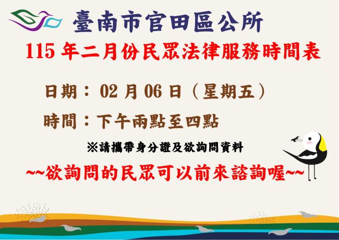 臺南市官田區公所人民申請案件項目暨處理期限表