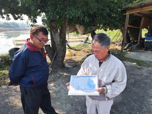 官田區區長洪聰發 為了解易淹水潛勢地區保全戶人口異動情形,並關心保全戶防汛防災準備情形以及生活品質,請各里里幹事定期訪視並宣導保全戶相關防災知識。
