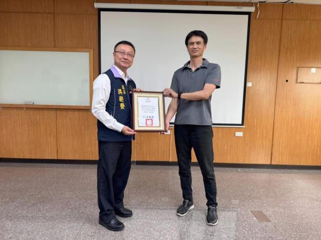新麗企業股份有限公司為關懷弱勢民眾,捐贈100個住宅用火災警報器,今(4/7)日區長洪聰發率領同仁、里長頒發感謝狀,表達感謝之意。